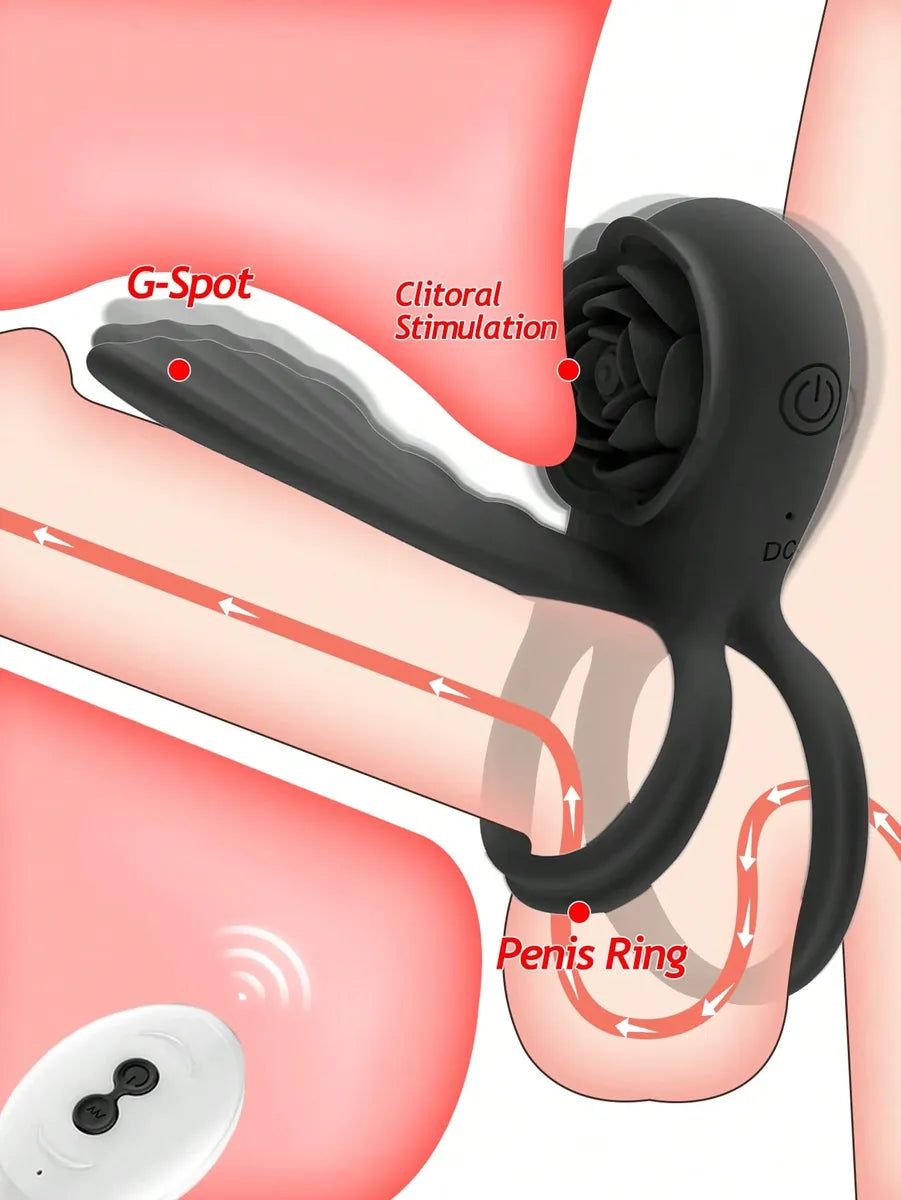 Serving a dual purpose the Rose is designed to stimulate the clitoris while the shaft (attached to the males penis) is inserted to massage the G spot for an intense orgasm.